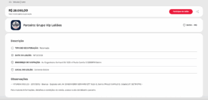 - Clique em “Participar do leilão” e você será redirecionado para o site da leiloeira responsável;