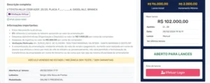 - Dê seu lance no veículo desejado;